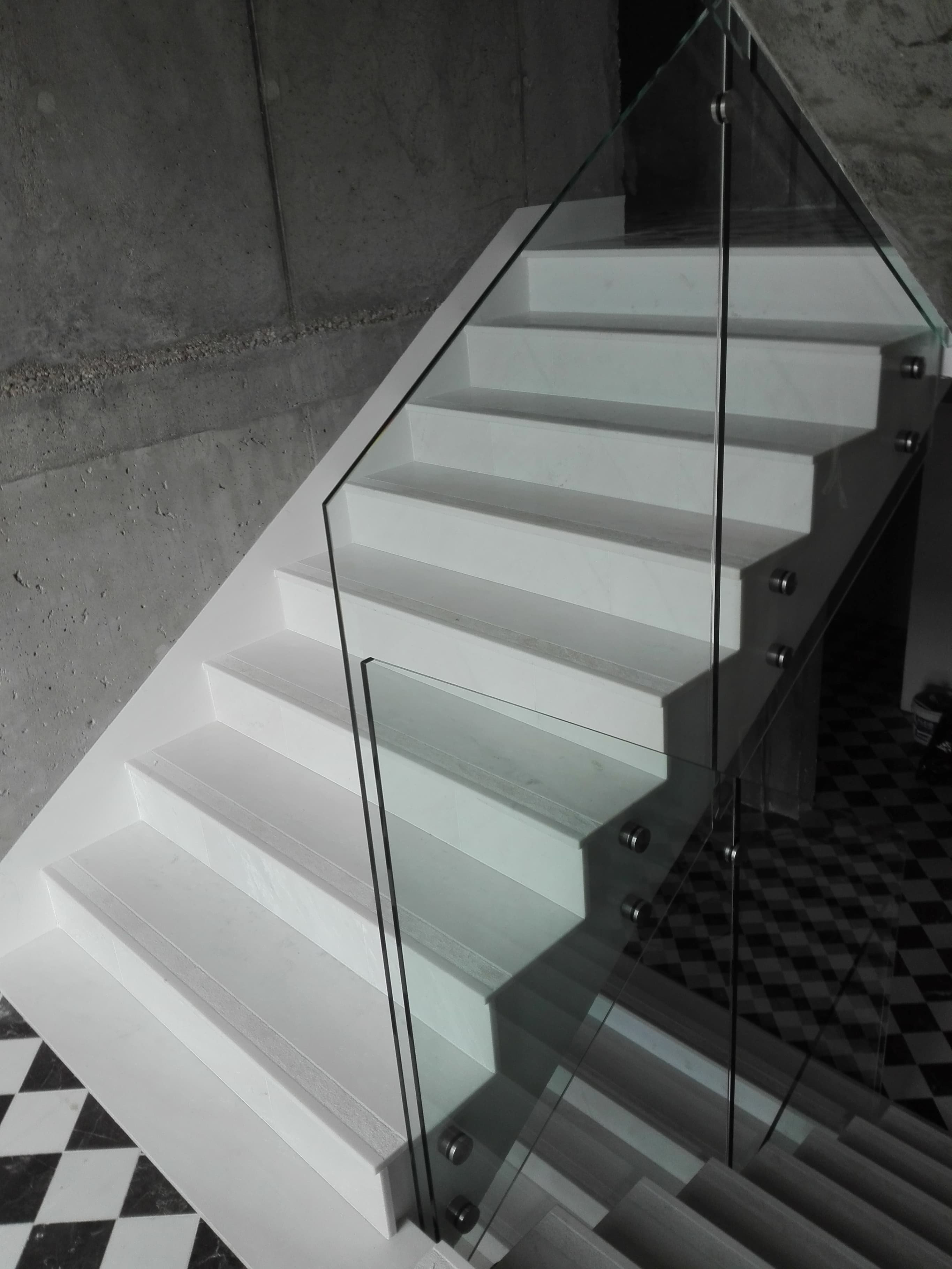Fundamentem dla nowoczesnych balustrad szklanych najczęściej są betonowe schody . Zamontowane w domu barierki mają zwykle 1000 lub 1100mm wysokości, a grubość szyb jest w zakresie od 12 do 17,52mm.