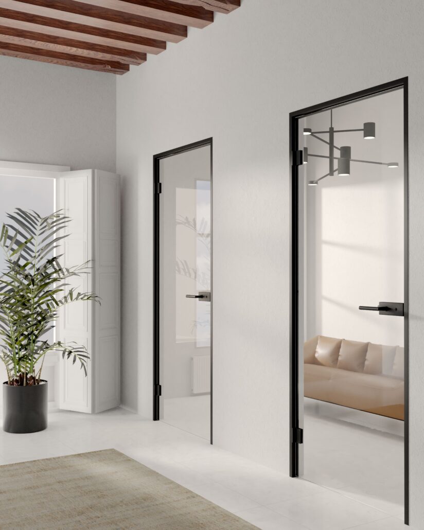 Drzwi szklane loftowe w czarnej ościeżnicy