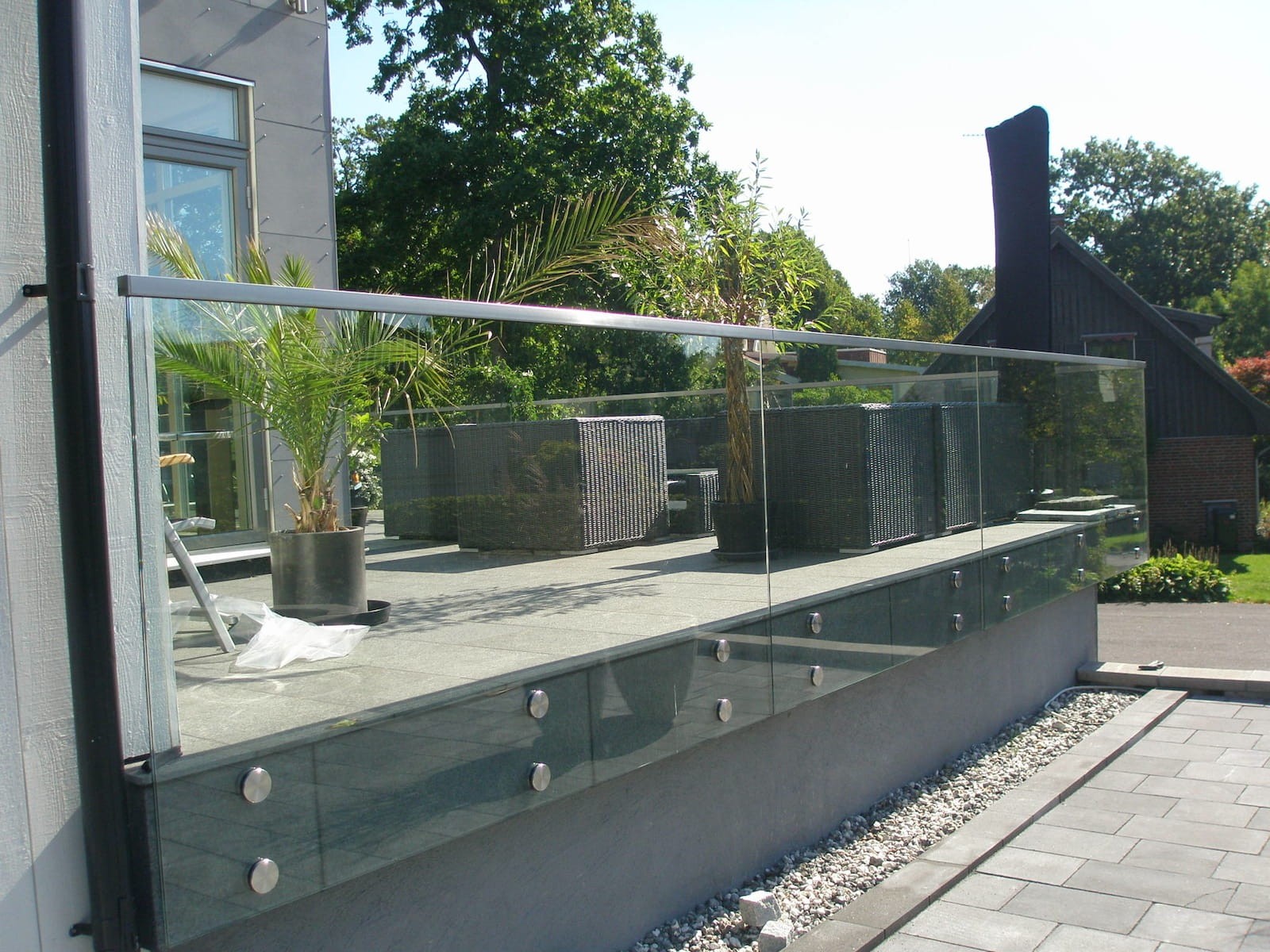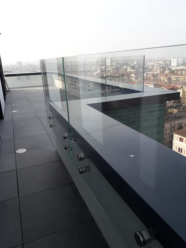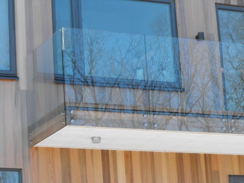 Balustrada szklana na rotulach punktowa do boku TIOMO ©