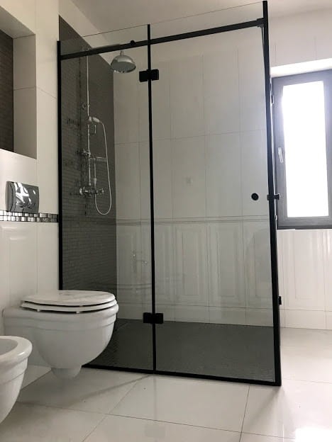 Czarna kabina prysznicowa narożna z drzwiami na wymiar