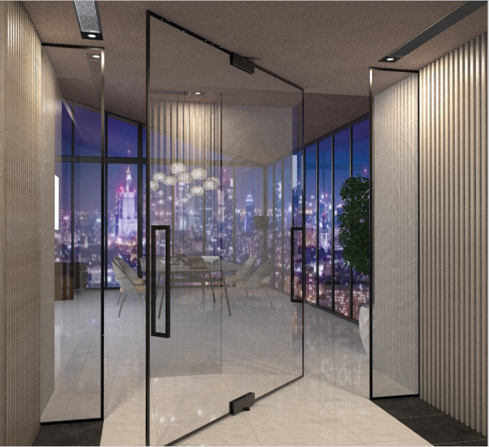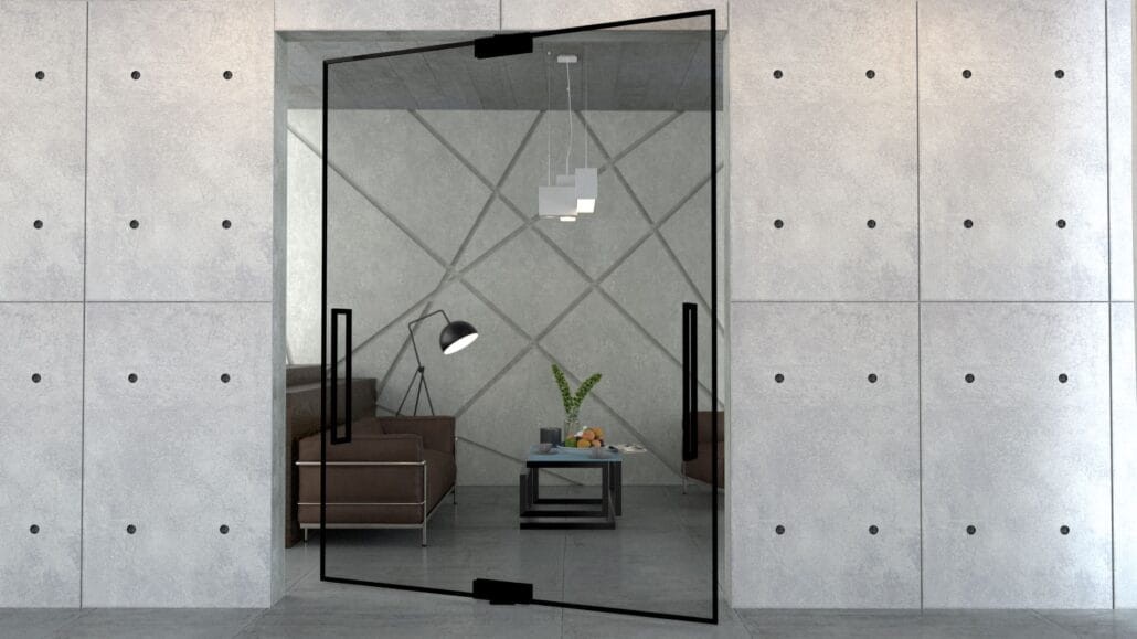 Drzwi szklane loftowe PIVOT ze szkła hartowanego mocowane na zawiasach góra/dół to popularne rozwiązanie w otaczających nas biurach, domach, galeriach. Montuje się je do tzw. ładnie obrobionej ściany. Drzwi wahadłowe ze szkła przeznaczone są do pomieszczeń o dużym natężeniu ruchu.