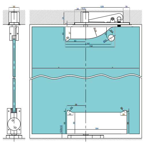 - zawias górny + trzpień sufitowy