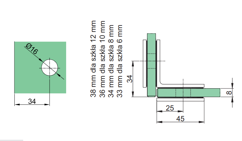 Łącznik na grubość szkła 8-12mm, materiał:mosiądz, kolor:czarny
