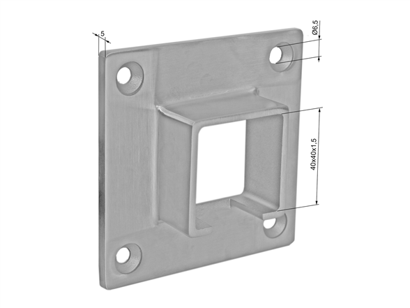 Materiał: Stal kwasoodporna AISI 316, Wykończenie powierzchni: Szlifowany, Phi sq: 40x40, a: 95, b: 95, H: 28