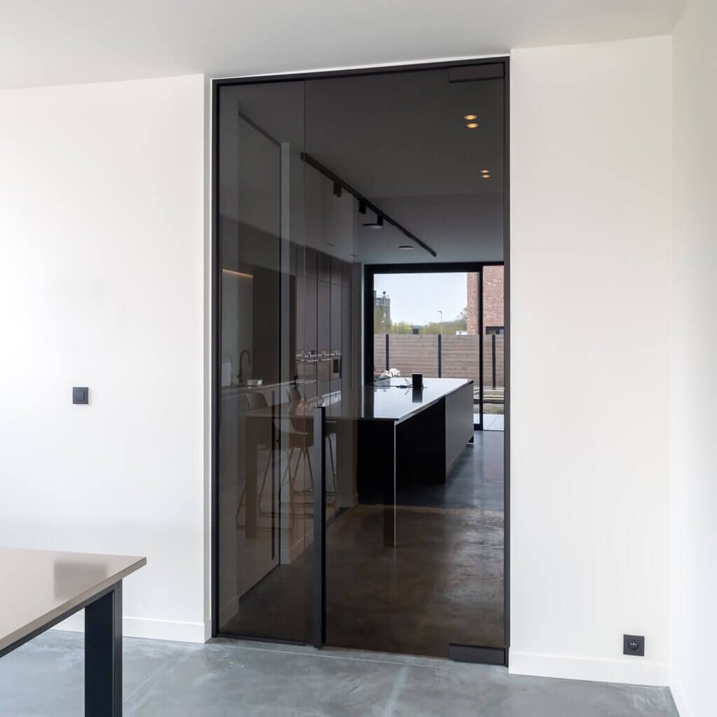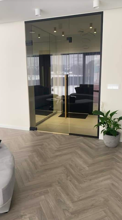 Drzwi szklane loftowe wahadłowe z funkcją samozamykającą