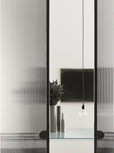 Szklana ściana szkło FLUTES zabudowa LOFT ryflowane