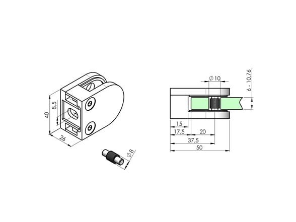 Uchwyt do szkła 40x50 mm na słupek kwadrat