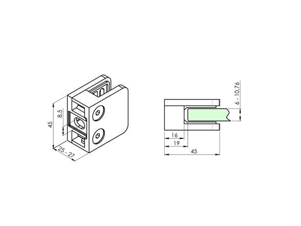 Uchwyt do szkła 45x45 mm na słupek kwadrat