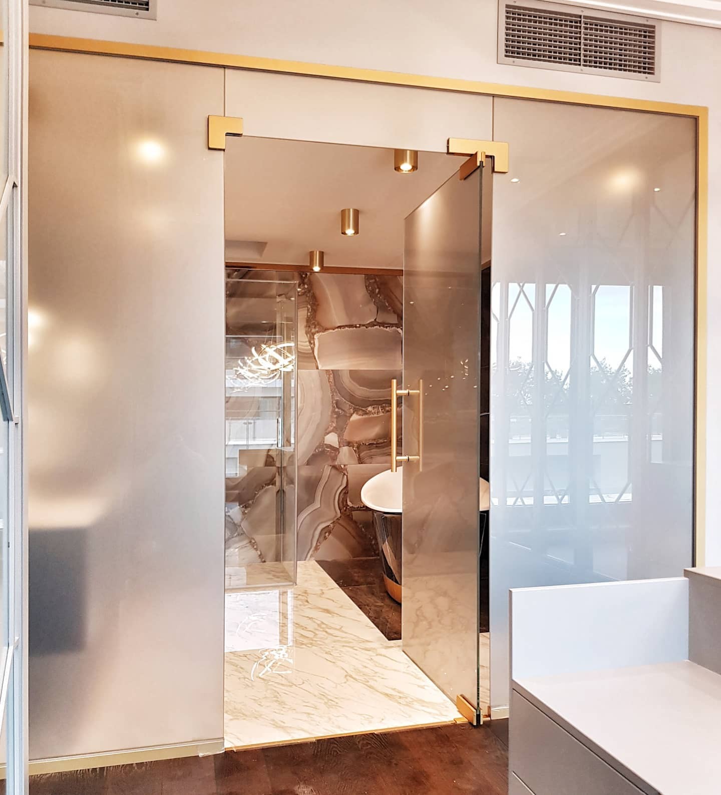 Drzwi szklane loftowe wahadłowe z funkcją samozamykającą