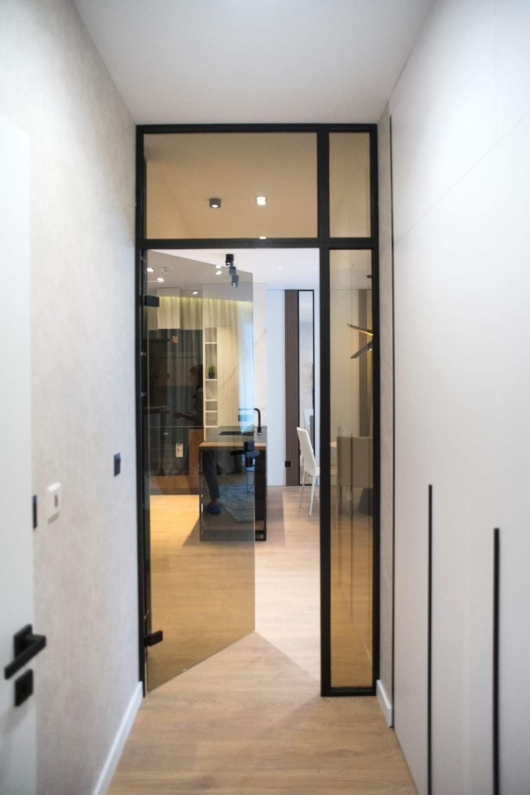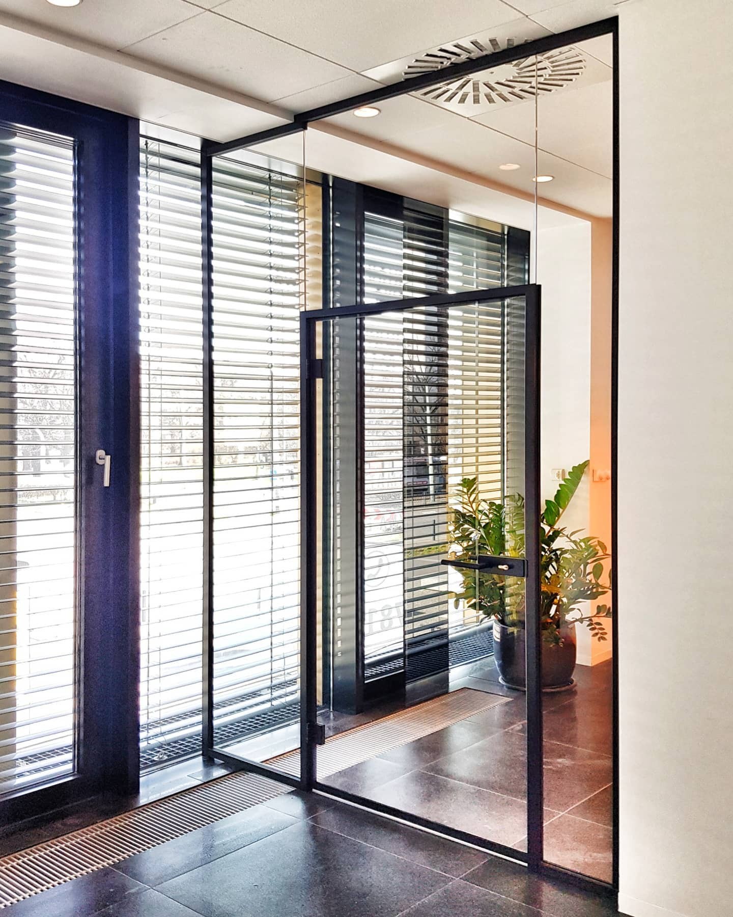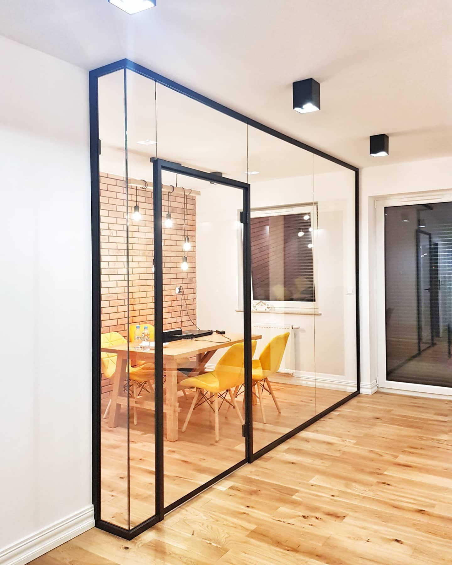 Zabudowa szklana z drzwiami w ościeżnicy