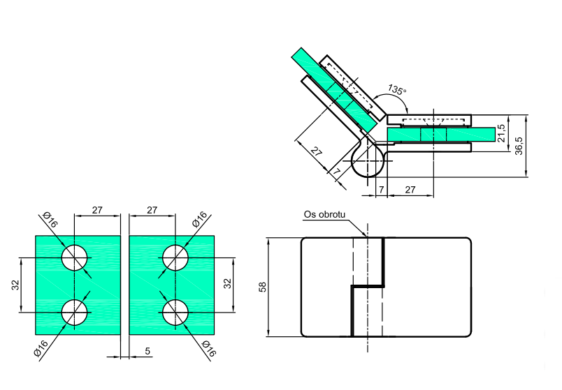 Zawias na grubość szkła 8-12mm, maksymalne obciążenie na dwóch zawiasach 45kg, materiał:mosiądz